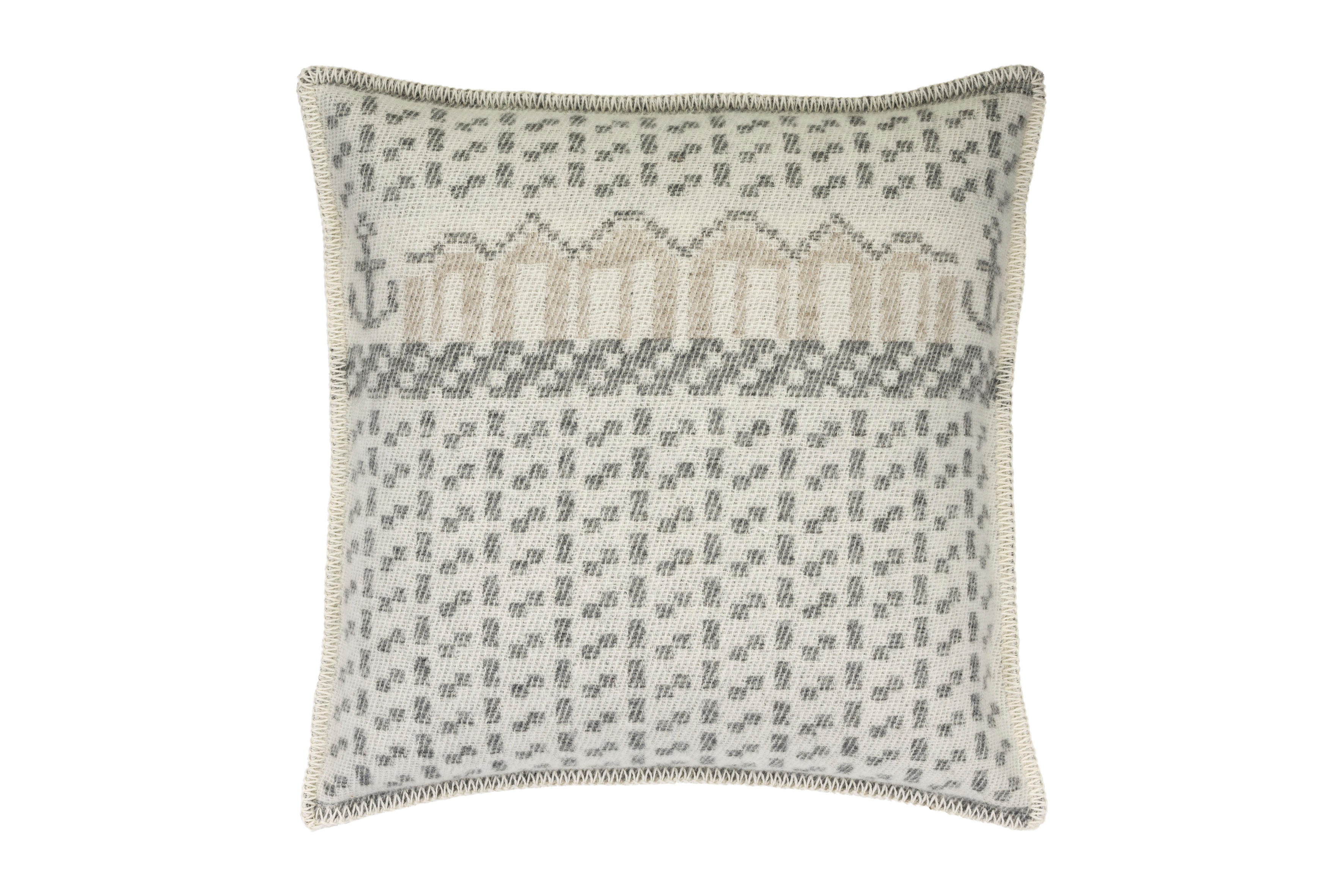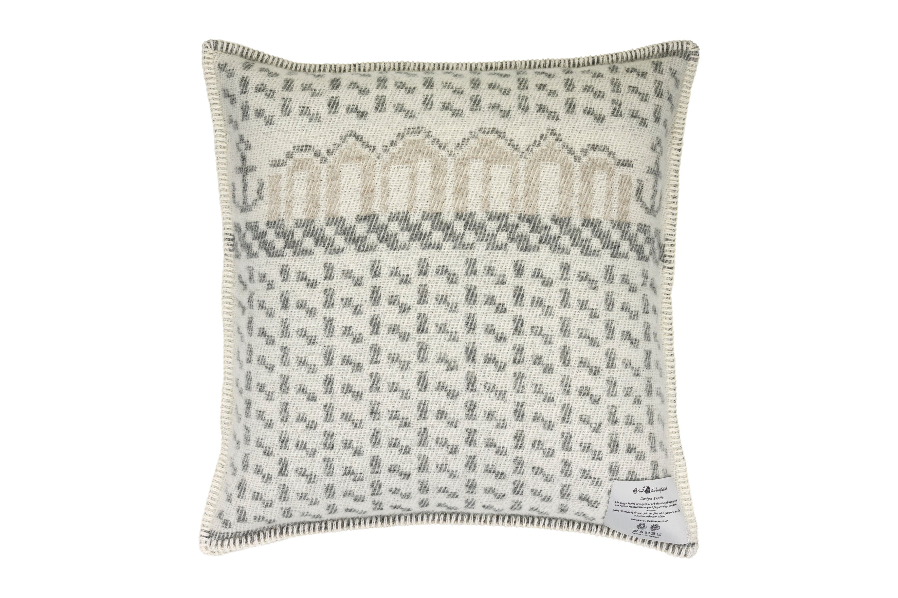 SKAFTÖ SNÖ, wool pillowcase is knit in our Skaftö design. This design is inspired by Bohuslän fisherman's sweaters and features a pattern and colour scheme in harmony with snowy nature.