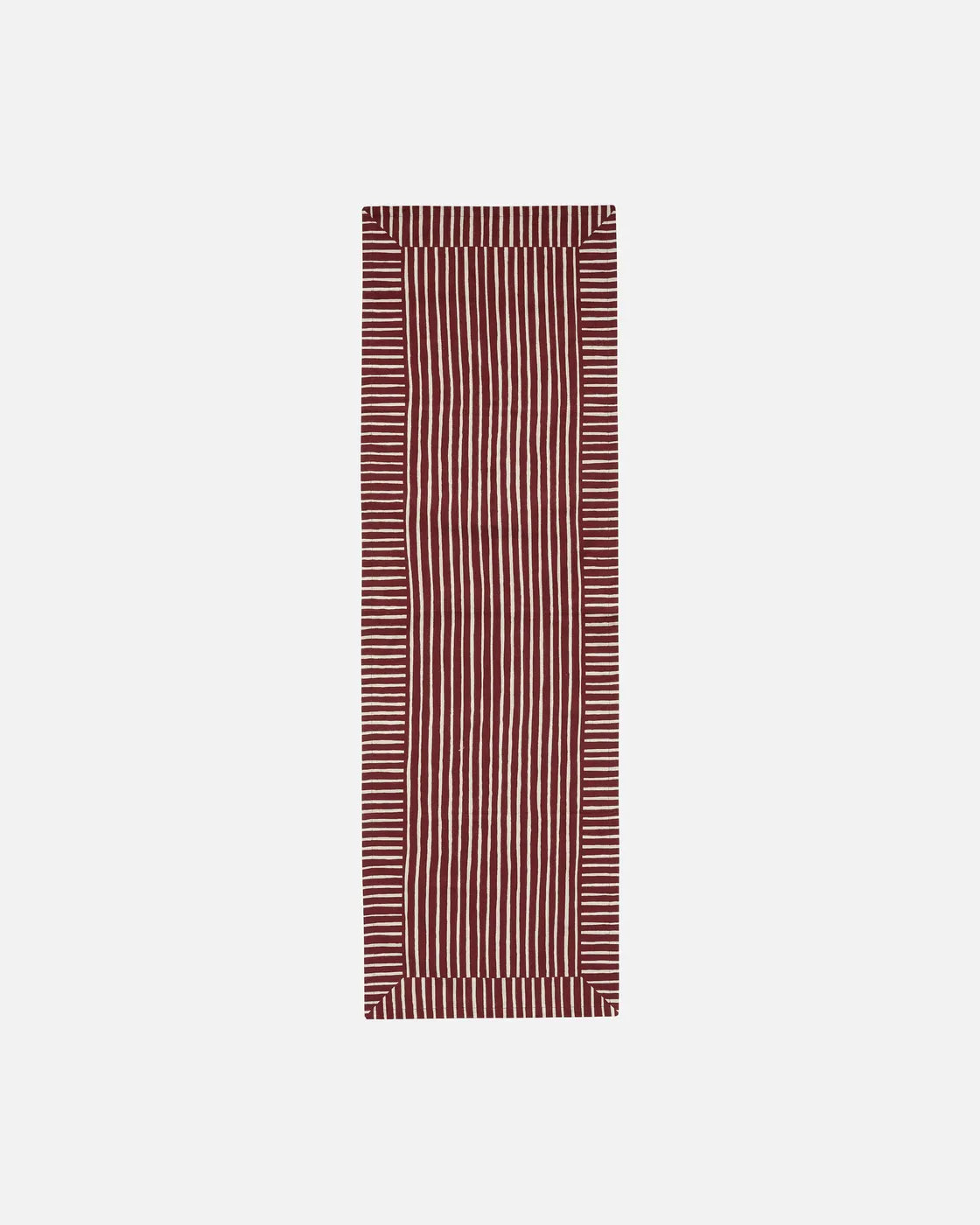This runner features the Piccolo pattern, which is printed in Helsinki. The pattern is printed running in two directions to give the appearance of a sewn edge.