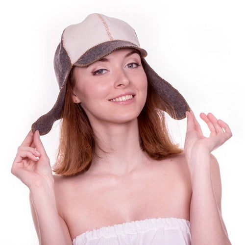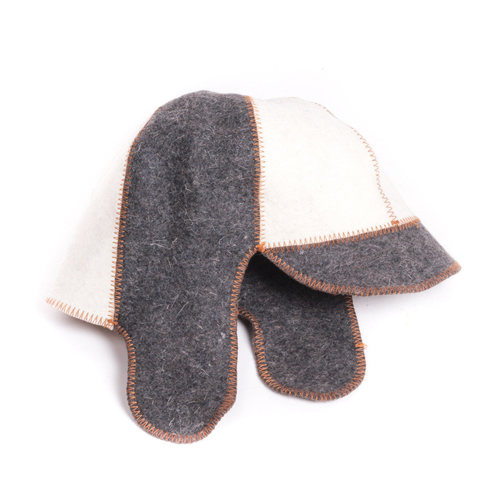 Sauna Hat, Natural Felt Grey and White Cap
