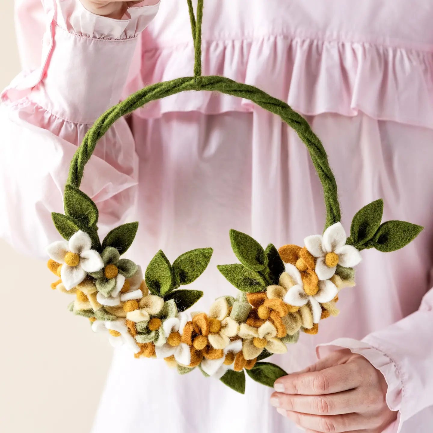 This cheerful yellow flower wreath welcomes spring with open petals. Whether on your door, wall or table, it brings light, warmth and handmade happiness.